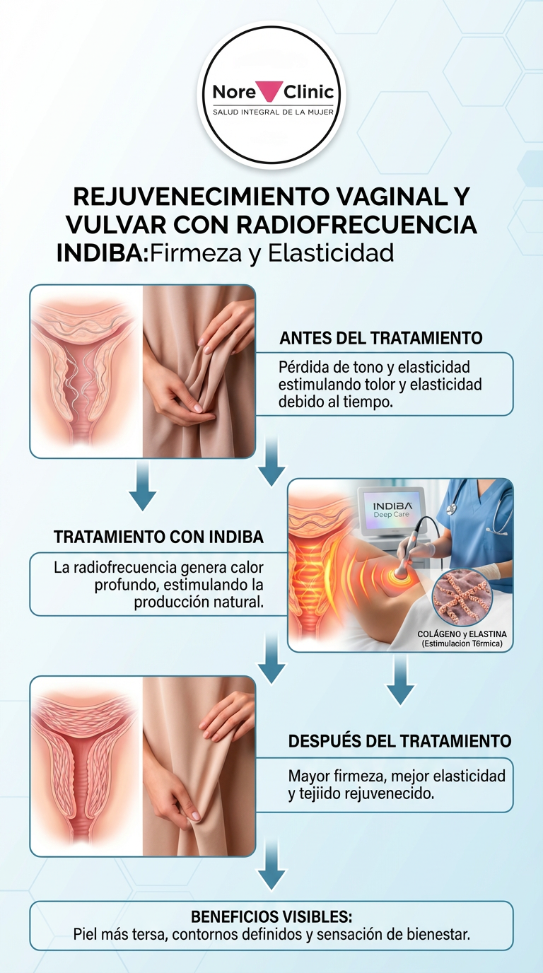 La radiofrecuencia vaginal INDIBA es un tratamiento revolucionario que utiliza energía de radiofrecuencia para estimular la producción natural de colágeno y elastina en los tejidos vaginales y vulvares. A diferencia de otros métodos, esta tecnología es completamente no invasiva y se realiza en consulta sin necesidad de anestesia ni tiempo de recuperación. Como explico siempre a mis pacientes en https://noreclinic.es/, el principio es simple pero poderoso: calor terapéutico que reactiva los procesos naturales de nuestro cuerpo.